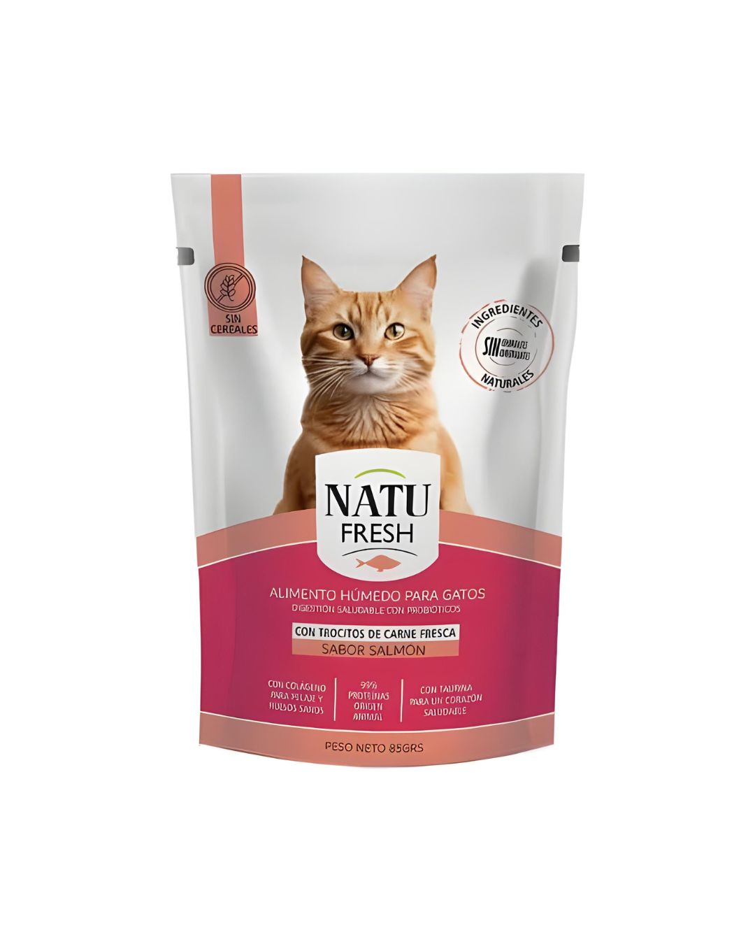 Descubrí una forma más saludable y deliciosa de alimentar a tu gato con Natu Fresh sabor salmón. Un alimento húmedo premium, natural y libre de cereales, ideal tanto para gatos adultos como para cachorros.